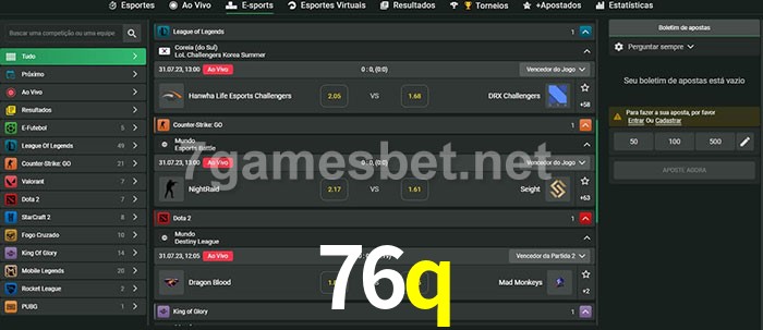 O 76q oferece uma grande seleção de opções de apostas em e-sports com probabilidades competitivas